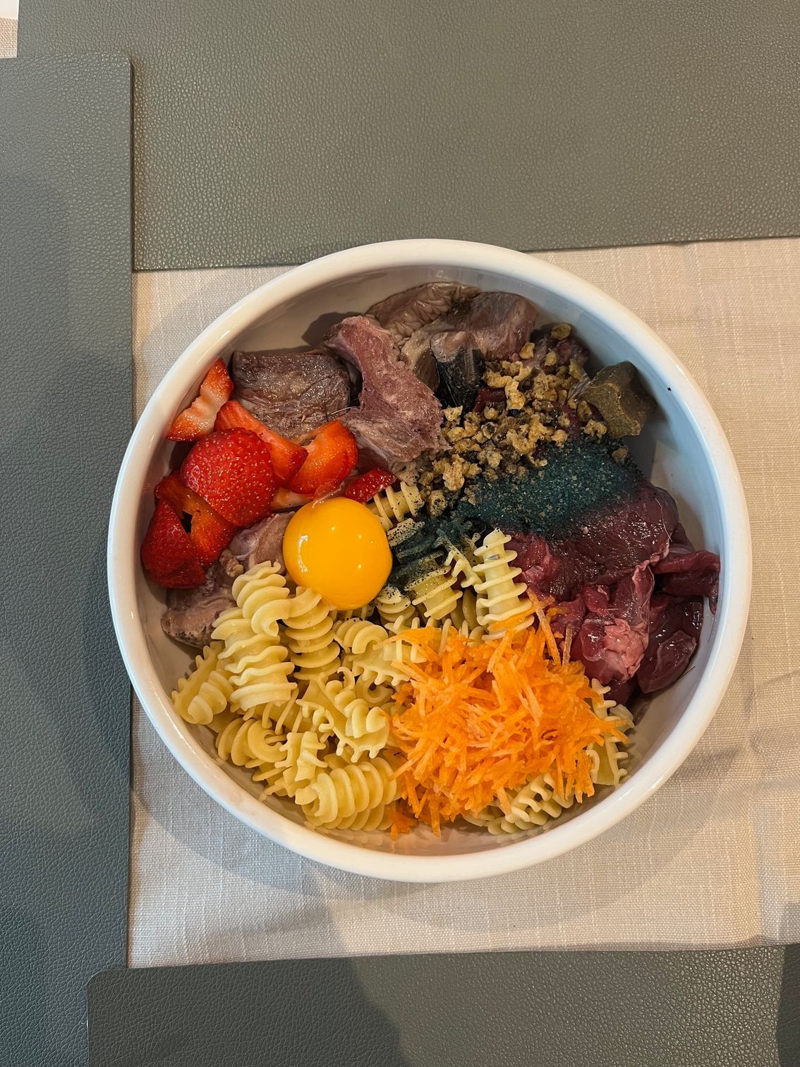 Cadice Appetit ist größer als üblich. Sie bekommt neben dem gewöhnlichen hochwertigen Trockenfutter mehrmals wöchentlich eine extra Portion frisches Fleisch, Kohlenhydrate und Gemüse.