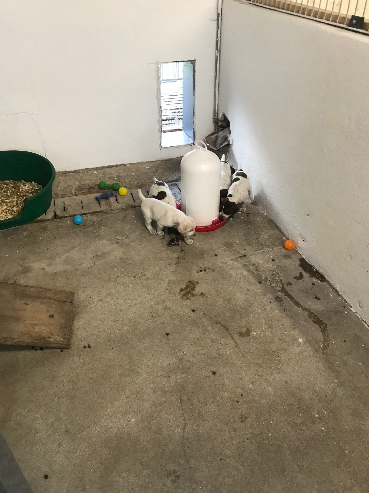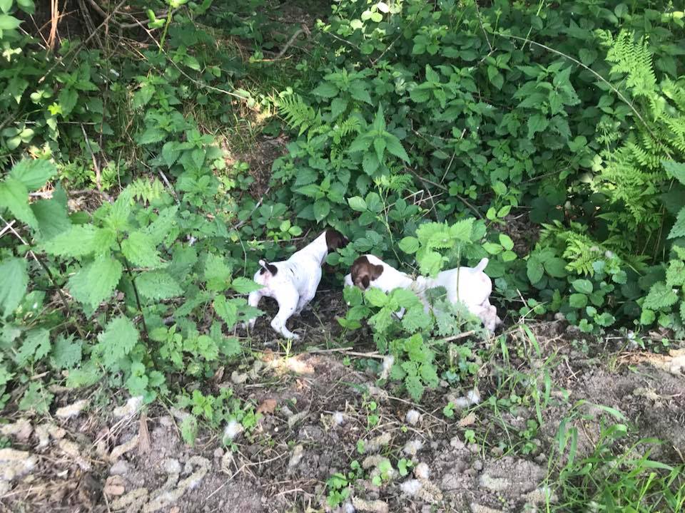 Die Prägung auf Wild erfolgt frühzeitig. Ein paar kleine Übungssequenzen und der frühe Kontakt mit Raubwild wie Fuchs und Marder sind für uns selbstverständlich. Auch kurze Ausflüge in das Revier oder der Besuch von Kindern werden abwechselnd mit kleinen Übungen eingebaut. Auch das heranführen an die unterschiedlichsten Untergründe und Hindernisse halten wir für sehr wichtig: Gewachsener Boden, Pflaster, Rosten, Spaltenböden, u.s.w.