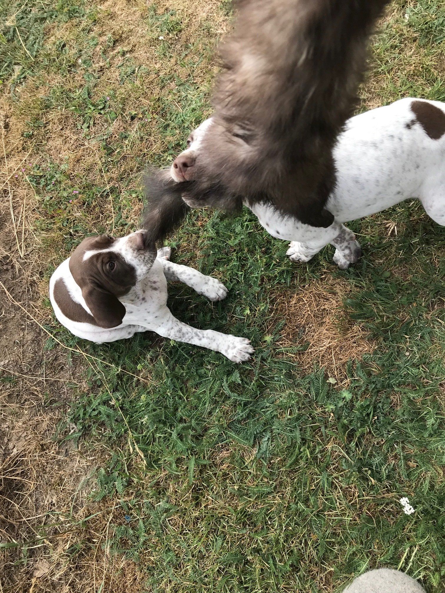 Da unsere Welpen alle in Jägerhände gehen, werden am 3. Lebenstag die Ruten der Welpen zur Vermeidung von Verletzungen bei der Jagdausübung gem. § 6 (1) Nr. 1b TierSchG kupiert. Sollten Welpeninteressenten dies nicht wünschen, so sprechen Sie uns bitte rechtzeitig an