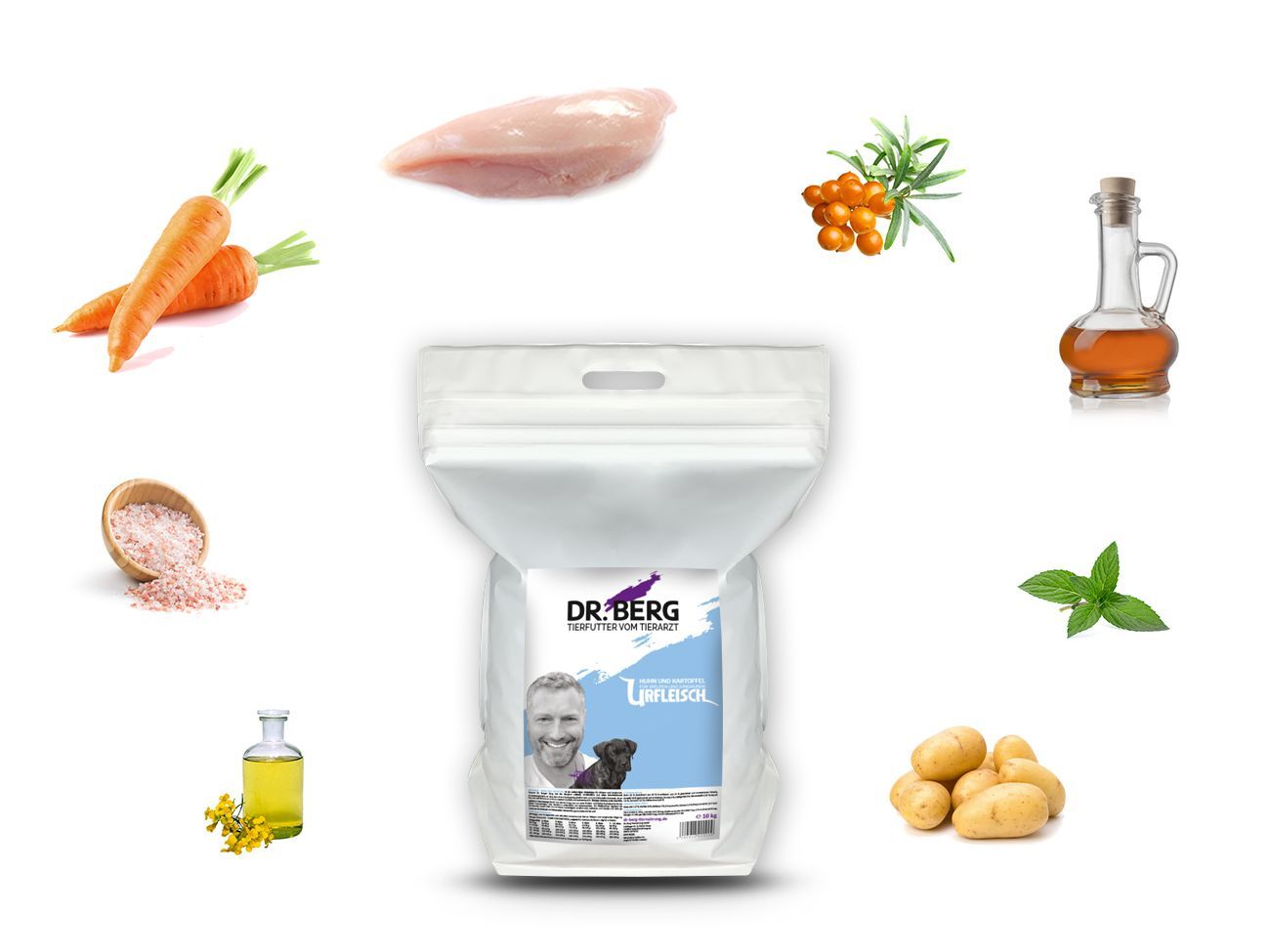 für Welpen von Dr. Berg und frisches Fleisch. Unsere ausgewachsenen Hunde werden mit Dr. Berg Urfleisch Lamm und frischem Fleisch gefüttert.